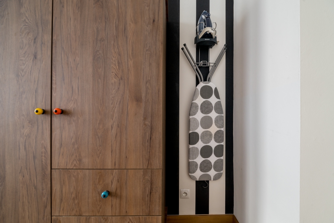 W sypialniach znajdują się szafy, komody, i miejsce do pracy.