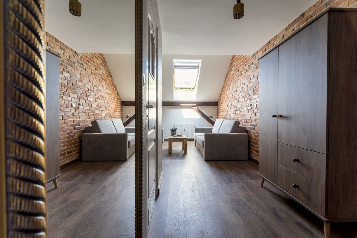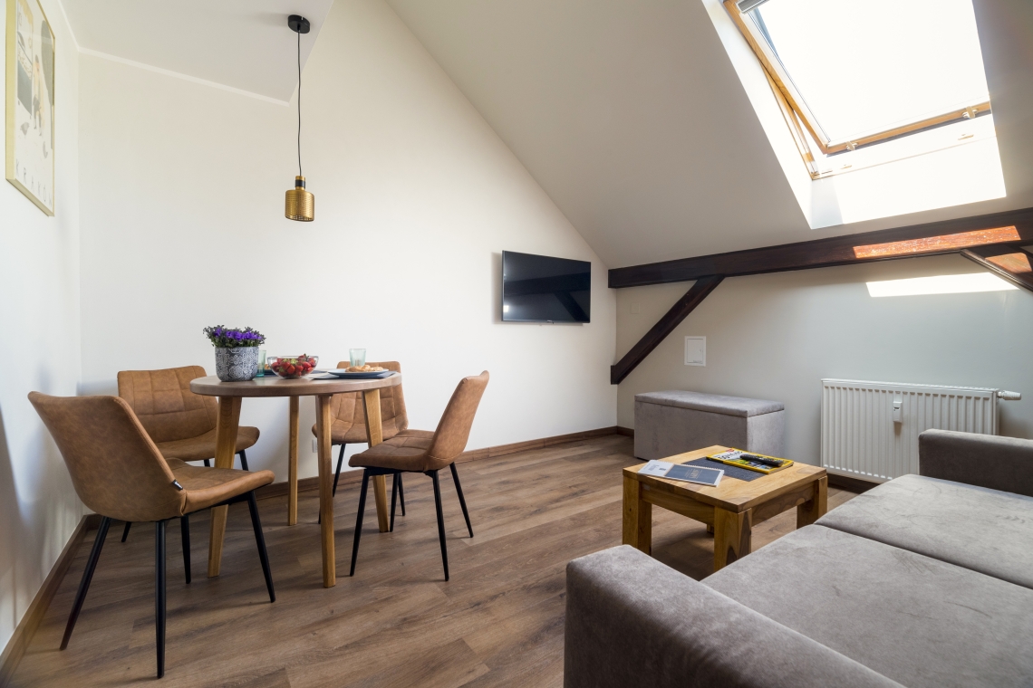 oraz dużą rozkładaną sofą w salonie, idealny dla 4 osób.